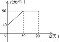 九年级某班数学兴趣小组经过市场调查整理出某种商品在第x天(1≤x≤90,且x为整数)的售价与销售量的相关信息如下.已知商品的进价为30元/件,设该商品的售价为y(单位:元/件),每天的销售量为p(单位:件),每天的销售利润为w(单位:元).