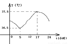 正常人的体温一般在37℃左右,但一天中的不同时刻不尽相同.下图反映了一天24小时内小明体温的变化情况,下列说法错误的是( )