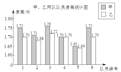 某学校要成立一支由6名女生组成的礼仪队,八年级两个班各选6名女生,分别组成甲队和乙队参加选拔.每位女生的身高统计如图,部分统计量如下表: