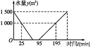 (1)根据图中提供的信息,求整个换水清洗过程水量y(m3)与时间t(min)的函数表达式;