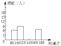 体育老师对九年级(9)班50位学生进行一分钟跳绳次数测试,以测试数据为样本,绘制出部分频数分布表和部分频数分布直方图.如下所示: