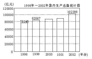 改革开放以来,我国国民经济保持良好发展势头,国内生产总值持续较快增长, 下图是1998年~2002年国内生产总值统计图.
