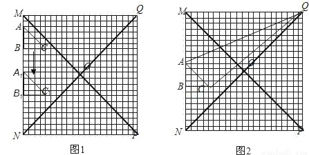 (1)如图1,当Rt△ABC向下平移到Rt△A1B1C1的位置时,请你在网格中画出Rt△A1B1C1关于直线QN成轴对称的图形;