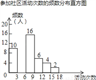 射阳县实验初中为了解全校学生上学期参加社区活动的情况,学校随机调查了本校50名学生参加社区活动的次数,并将调查所得的数据整理如下: