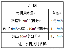 (10分)为了加强公民的节水意识,合理利用水资源,某市采用价格调控的手段达到节水的目的,该市自来水收费的价目表如下表(注:水费按月份结算,m3表示立方米):