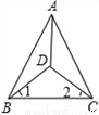 已知在△ABC中,∠ABC=∠ACB,∠1=∠2,求证:AD平分∠BAC。