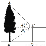 如图,在建筑平台CD的顶部C处,测得大树AB的顶部A的仰角为45°,测得大树AB的底部B的俯角为30°,已知平台CD的高度为5m,则大树的高度为 m(结果保留根号)
