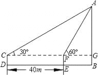 如图,在一次数学课外实践活动中,要求测教学楼的高度AB、小刚在D处用高1.5m的测角仪CD,测得教学楼顶端A的仰角为30°,然后向教学楼前进40m到达E,又测得教学楼顶端A的仰角为60°.求这幢教学楼的高度AB.