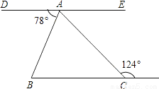 如图,DAE是一条直线,DE∥BC,则∠BAC=___度.