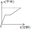 某人先以v1的速度由A地出发去B地,途中在超市购买了一瓶水之后,又以v2的速度继续进行至B地,已知v1<v2 , 下面图象中能表示他从A地到B地的时间t(分钟)与路程s(千米)之间关系的是( )