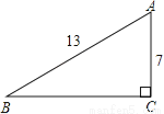 如图,在Rt△ABC中,∠C=90°,AB=13,AC=7,则sinB= .