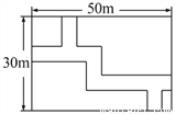 如图,在长为50米,宽为30米的长方形地块上,有纵横交错的几条小路,宽均为1米,其它部分均种植花草.试求出种植花草的面积是多少?
