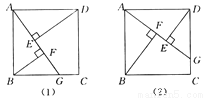 (3)如图(2)所示,若点G是CD边上任意一点(不与C,D两点重合),作BF⊥AG于点F,DE⊥AG于点E,那么图中的全等三角形是____,线段EF与AF,BF的等量关系是____.(不需证明,直接写出结论即可)
