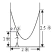 如图,在相距2米的两棵树间拴一根绳子做一个简易的秋千.拴绳子的地方距地面高都是2.5米,绳子自然下垂呈抛物线状,身高1米的小芳距较近的那棵树0.5米时,头部刚好接触到绳子,则绳子的最低点距地面的距离为 米.