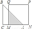 如图,已知等腰直角△ABC的直角边长与正方形MNPQ的边长均为20厘米,AC与MN在同一直线上,开始时点A与点N重合,让△ABC以每秒2厘米的速度向左运动,最终点A与点M重合,则重叠部分面积y(厘米2)与时间t(秒)之间的函数关系式为____