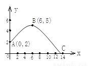 在体育测试时,初三的一名高个子男生推铅球,已知铅球所经过的路线是某二次函数图象的一部分(如图),若这个男生出手处A点的坐标为(0,2),铅球路线的最高处B点的坐标为B(6,5).