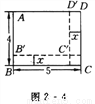 如图2 - 4所示,长方形ABCD的长为5 cm,宽为4 cm,如果将它的长和宽都减去x(cm),那么它剩下的小长方形AB′C′D′的面积为y(cm2).