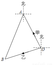 如图,甲、乙两船同时从港口O出发,其中甲船沿北偏西30°方向航行,乙船沿南偏西70°方向航行,已知两船的航行速度相同,如果1小时后甲、乙两船分别到达点A、B处,那么点B位于点A的( )