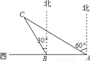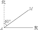 如图,某渔船在海面上朝正东方向匀速航行,在A处观测到灯塔M在北偏东60°方向上,且AM=100海里.那么该船继续航行 海里可使渔船到达离灯塔距离最近的位置.
