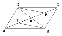 如图,在□ABCD中,AC交BD于点O,点E、点F分别是OA、OC的中点,请判断线段BE、DF的关系,并证明你的结论![]()