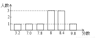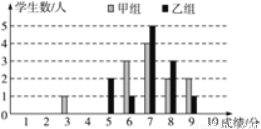(8分)一次学科测验,学生得分均为整数,满分10分,成绩达到6分以上(包括6分)为合格,成绩达到9分为优秀.这次测验中甲、乙两组学生成绩分布的条形统计图如图.