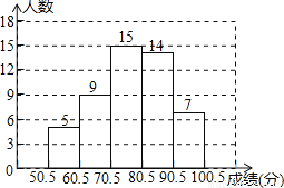 对赵中、安中的最近的联考二的数学测试成绩得分为整数进行统计,将所有成绩由低到高分成五组,并绘制成如图所示的频数分布直方图,根据直方图提供的信息,在这次测试中,成绩为A等分以上,不含80分的百分率为