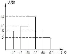 小杰调查了本班同学体重情况,画出了频数分布直方图,那么下列结论不正确的是