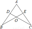 如图,点D、E分别在线段AB、AC上,BE、CD相交于点O,AE=AD要使△ABE≌△ACD,需添加一个条件是 (只要写一个条件).