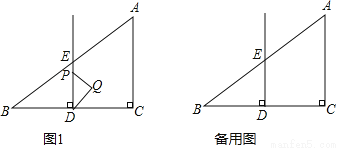 如图,在三角形ABC中,,点D为边BC的中点,射线交AB于点点P从点D出发,沿射线DE以每秒1个单位长度的速度运动以PD为斜边,在射线DE的右侧作等腰直角设点P的运动时间为秒.