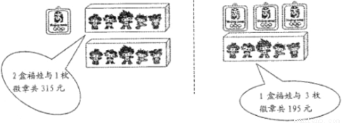 (1)求一盒“福娃”和一枚徽章各多少元?