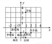 (1)根据图中所建立的平面直角坐标系,写出学校、邮局的坐标;