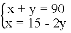 表格中捐款2元和3元的人数不小心被墨水污染已经看不清楚,若设捐款2元的有x名同学,捐款3元的有y名同学,根据题意,可列方程组( ) .