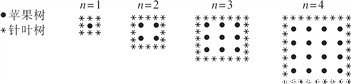 农夫将苹果树种在正方形的果园内,为了保护苹果树不受风吹,他在苹果树的周围种上针叶树.在下图里,你可以看到农夫所种植苹果树的列数(n)和苹果树数量及针叶树数量的规律:当n为某一个数值时,苹果树数量会等于针叶树数量,则n为( )