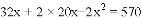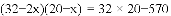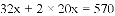 如图,某小区计划在一块长为32m,宽为20m的矩形空地上修建三条同样宽的道路,剩余的空地上种植草坪,使草坪的面积为570m2 .若设道路的宽为x m,则下面所列方程正确的是( )
