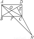 在矩形ABCD中,AB=1,AD=,AF平分∠DAB,过C点作CE⊥BD于E,延长AF.EC交于点H,下列结论中:①AF=FH;②BO=BF;③CA=CH;④BE=3ED.正确的是( )