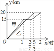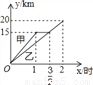 一段笔直的公路AC长20千米,途中有一处休息点B,AB长15千米,甲、乙两名长跑爱好者同时从点A出发,甲以15千米/时的速度匀速跑至点B,原地休息半小时后,再以10千米/时的速度匀速跑至终点C;乙以12千米/时的速度匀速跑至终点C,下列选项中,能正确反映甲、乙两人出发后2小时内运动路程y(千米)与时间x(小时)函数关系的图象是( )