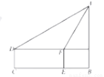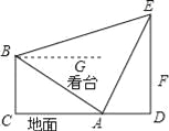 如图所示,体育场内一看台与地面所成夹角为30°,看台最低点A到最高点B的距离为10,A,B两点正前方有垂直于地面的旗杆DE.在A,B两点处用仪器测量旗杆顶端E的仰角分别为60°和15°(仰角即视线与水平线的夹角)
