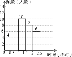 我市某中学对本校初中学生完成家庭作业的时间做了总量控制,规定每天完成家庭作业的时间不超过1.5小时.该校数学课外兴趣小组对本校初中学生回家完成作业的时间做了一次随机抽样调查,并绘制出如图所示的频数分布表和频数分布直方图的一部分.
