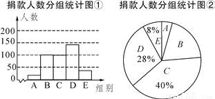 (2)先求出C组的人数,再补全“捐款人数分组统计图①;