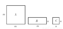 三种不同类型的长方形地砖长宽如图所示,现有A类1块,B类4块,C类5块. 小明在用这些地砖拼成一个正方形时,多出其中1块地砖,那么小明拼成正方形的边长是( )