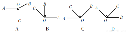 作一个钝角为∠AOB,然后以O为顶点,以OA为一边,在∠AOB的内部画一条射线OC,使∠AOC=90°.下列图形中正确的是【 】