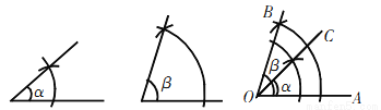 完成作图步骤:已知∠,∠ (∠>∠),求作一个角,使它等于∠-∠.作法:(1)作∠AOB=_______;(2)以OA为一边,在∠AOB的内部作∠AOC=___,则∠BOC就是所求作的角(如图).