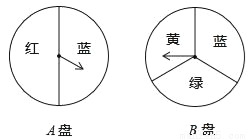 由两个可以自由转动的转盘、每个转盘被分成如图所示的几个扇形、游戏者同时转动两个转盘,如果一个转盘转出了红色,另一转盘转出了蓝色,游戏者就配成了紫色下列说法正确的是( )