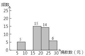 (3)该校共有1600名学生,估计这次活动中爱心捐款额不低于20元的学生有多少人?
