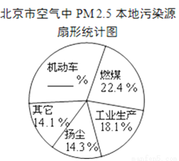据报道,历经一年半的调查研究,北京PM2.5源解析已经通过专家论证.各种调查显示,机动车成为PM2.5的最大来源,一辆车一天行驶20千米,那么这辆车每天就要向大气里排放0.035千克污染物.以下是相关的统计图表: