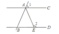 如图所示, ,AE平分∠BAC交BD于点E,若∠1=64°,则∠2的度数为_____.