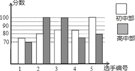 我市某中学举行“中国梦•校园好声音”歌手大赛,高、初中部根据初赛成绩,各选出5名选手组成初中代表队和高中代表队参加学校决赛.两个队各选出的5名选手的决赛成绩(满分为100分)如图所示.
