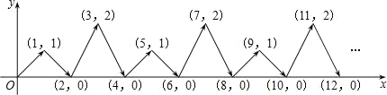如图,动点P在平面直角坐标系中按图中箭头所示方向运动,第1次从原点运动到点(1,1),第2次接着运动到点(2,0),第3次接着运动到点(3,2),…,按这样的运动规律,经过第2015次运动后,动点P的坐标是( )