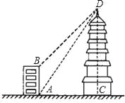 如图,一栋居民楼AB的高为16米,远处有一栋商务楼CD,小明在居民楼的楼底A处测得商务楼顶D处的仰角为60°,又在商务楼的楼顶D处测得居民楼的楼顶B处的俯角为45°.其中A、C两点分别位于B、D两点的正下方,且A、C两点在同一水平线上,求商务楼CD的高度.