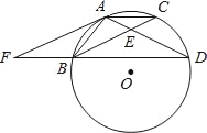 如图,点A,B,C,D在⊙O上,AB=AC,AD与BC相交于点E,AE=ED,延长DB到点F,使FB=BD,连接AF.